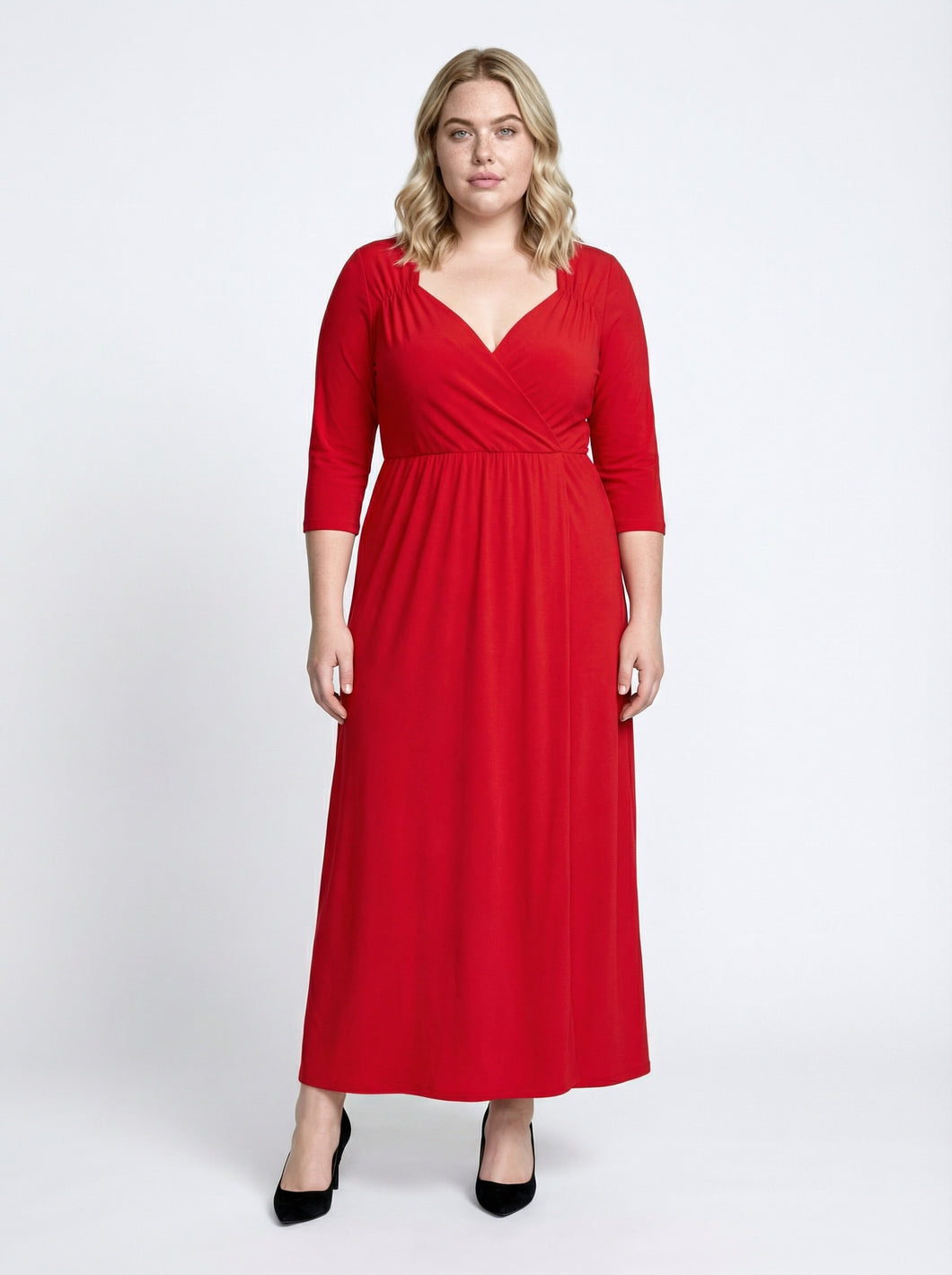 - Síðkjóll með V- hálsmáli í bak og að framan.