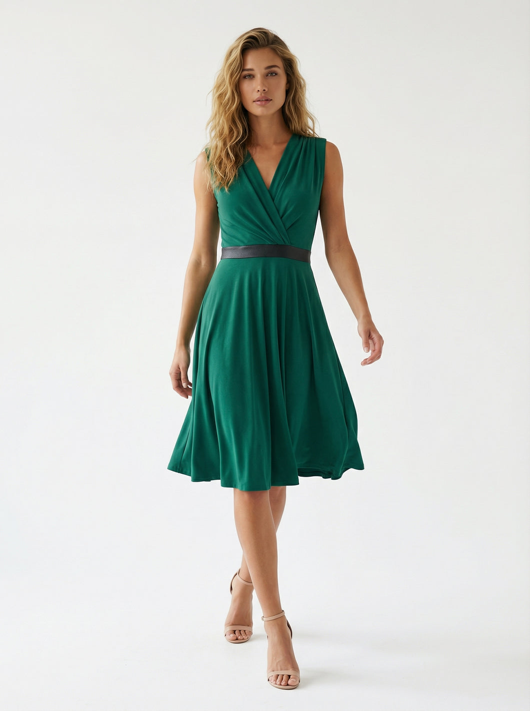 • Þessi er úr flottu grænu teygjanlegu efni: 95% Polyester, 5% Lycra einnig brúnsvart pleður efni í bryddingu og mitti.